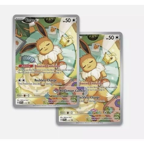 - Promo Card: 1 full-art foil promo card featuring Eevee with a Pokémon Center logo.
