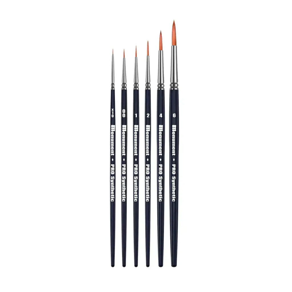 Our PRO Synthetics mimic sable perfectly, delivering more "snap" than natural hair brushes, while maintaining great paint loading and control. All the feel and handling of a natural brush in a full synthetic. Great for everything from smooth blends and edge highlights to texturing and dotting those eyes. The ultimate workhorse brushes!