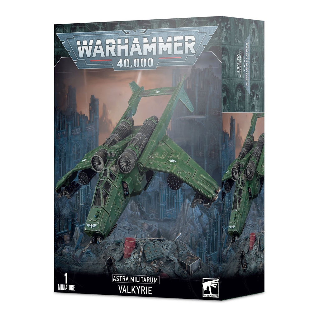 This kit comprises 128 plastic components to build one Valkyrie, and is supplied with an Astra Militarum Vehicle Transfer Sheet featuring tactical markings, numerals, and other regimental heraldry.